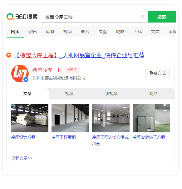 • 品宣大卡:360搜索品宣广告(快传企业号直达),定制首页固定广告大卡位;投放关键词根据品类拓展设置,关键词数量按购买套餐为准;
